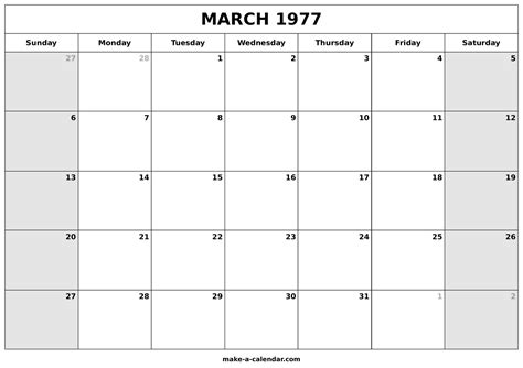 1977 Calendar March. Web 7 rows download printable march 1977. Web the blank march 1977 calendar with.
