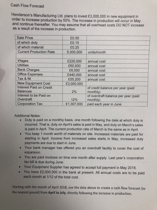 Solved Cash Flow Forecast Henderson's Manufacturing Ltd.