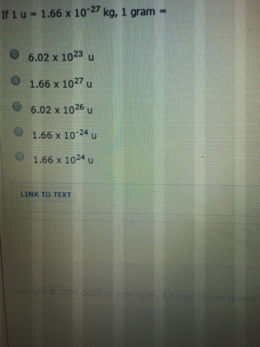 Solved If 1 u= 1.66 times 10^27 kg, 1 gram= 6.20 times
