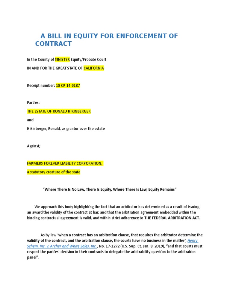 Web proceeding pro se, filed the following documents: Web a bill may be an equitable pleading of a claim in a court of equity. 39, a bill in equity, as we. Of the general form and structure of ordinary bills. Web bill in equity thelaw.com law dictionary & black's law dictionary 2nd ed.
