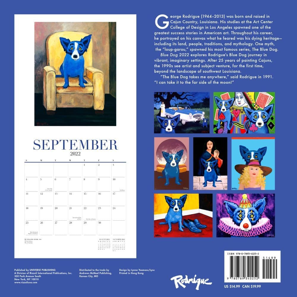 2022 Blue Dog Wall Calendar Rodrigue Studios