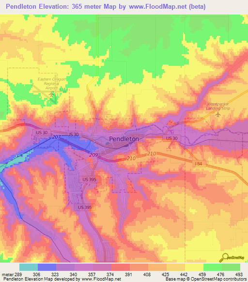 Elevation of Pendleton, OR, USA Topographic Map Altitude Map