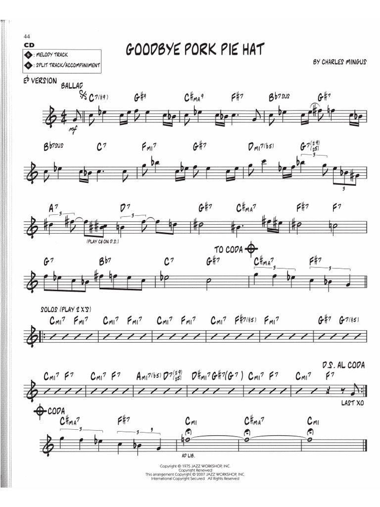 Web free goodbye pork pie hat by charles mingus sheet music | download pdf or print on musescore.com. Web this is a hal leonard digital item that includes: This music can be instantly opened with the following apps: Web download and print goodbye pork pie hat sheet music for piano solo by charles mingus from sheet music direct.