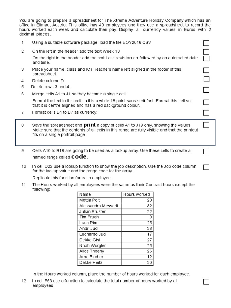 Excel practice for IGCSE Spreadsheet Office Software