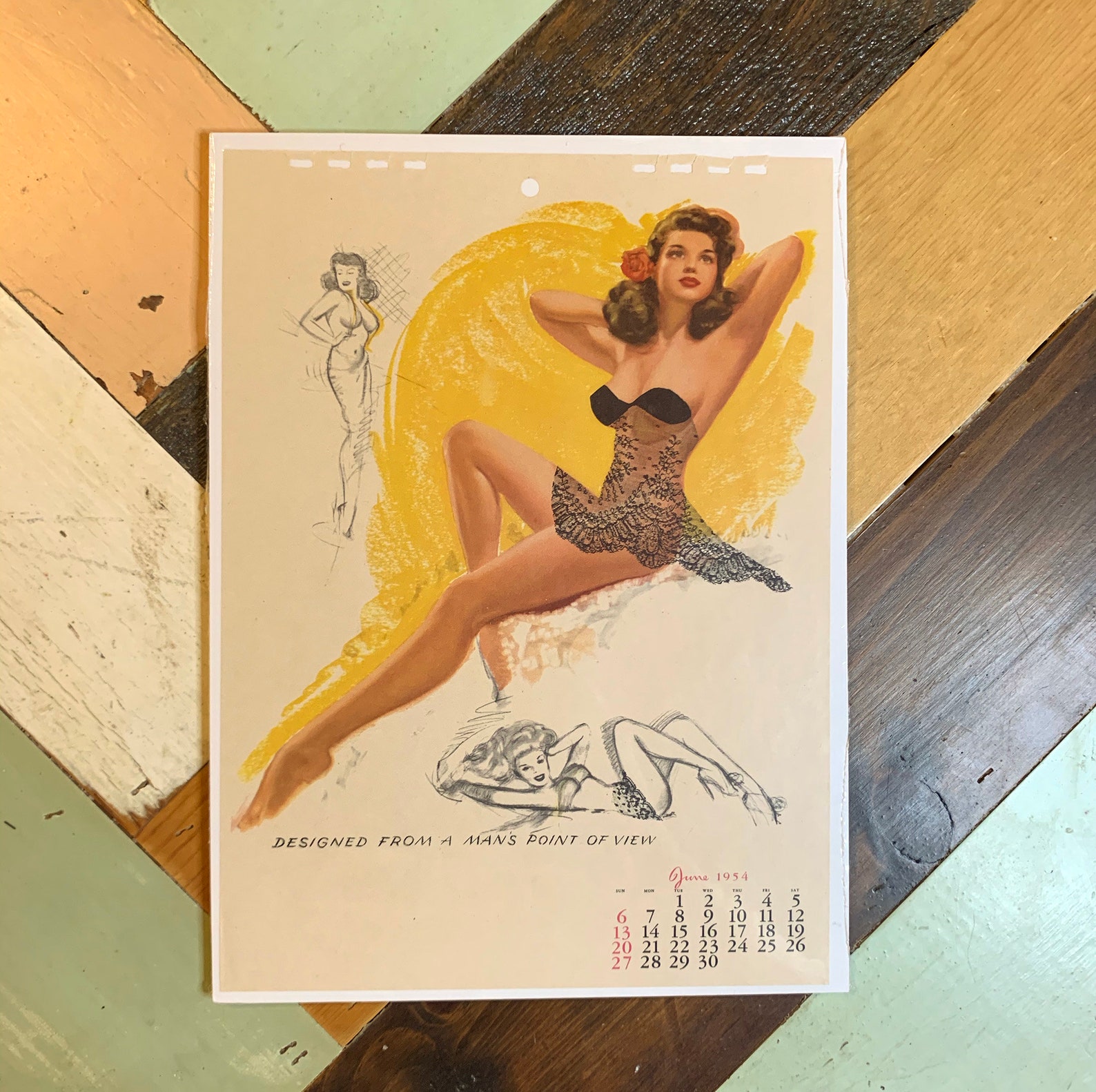 June 1954 Pinup Calendar Page Swim Suit Bikini Lingerie Rose Etsy