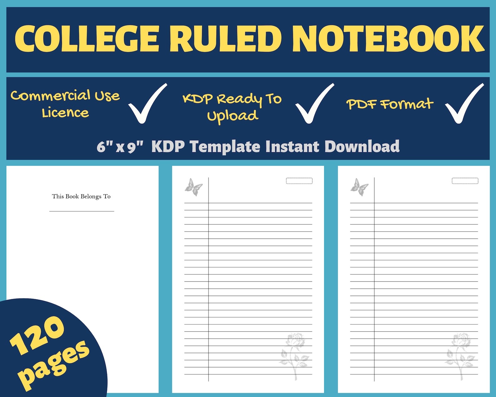 College Notebook Template 6x9 KDP Interior Commercial Use Etsy
