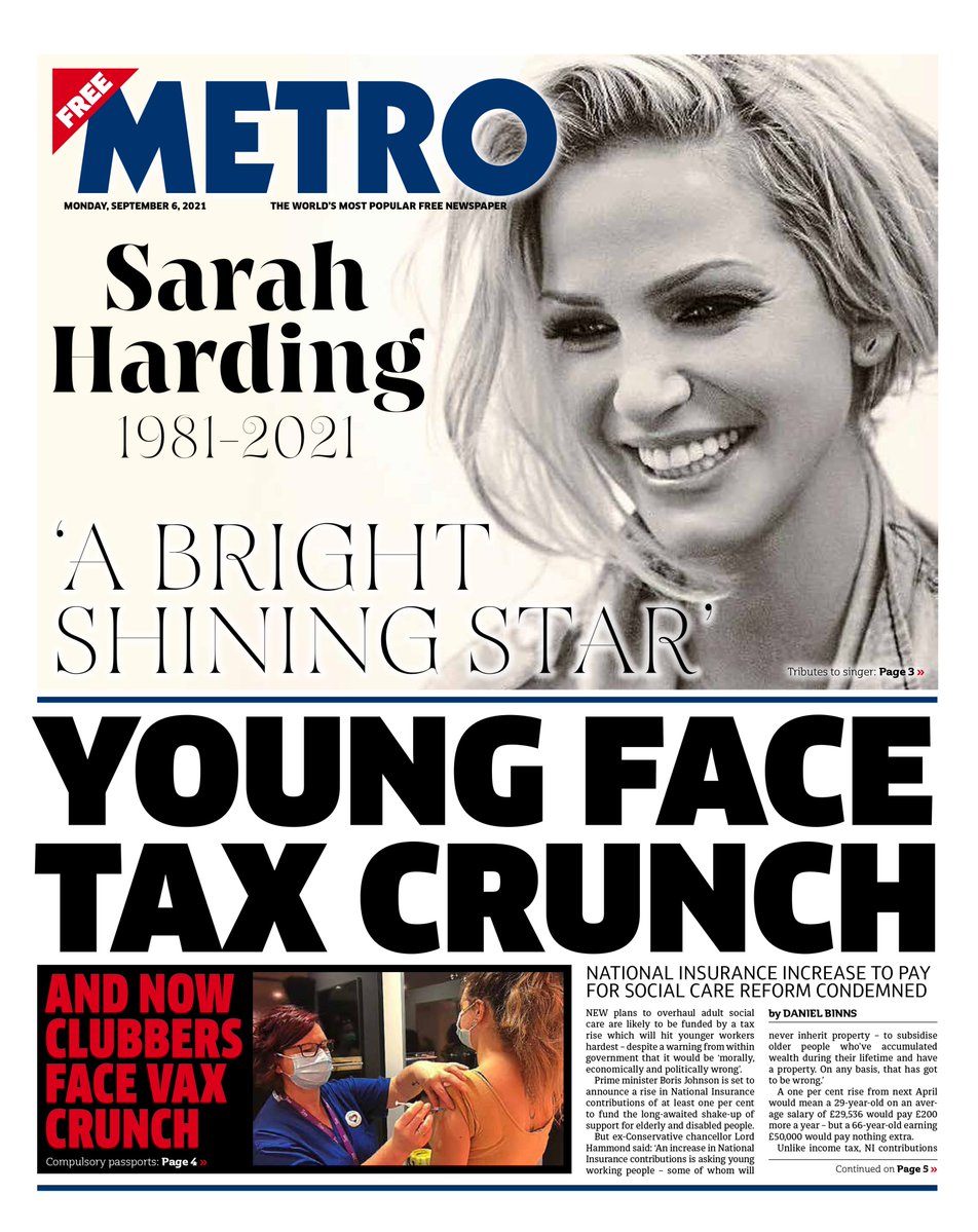 Metro Front Page 6th of September 2021 Tomorrow's Papers Today!
