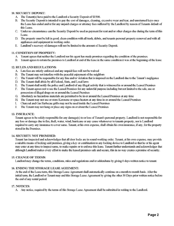 Garage lease agreement in Word and Pdf formats page 3 of 3