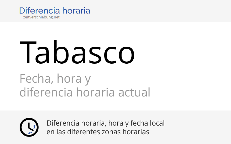 Tabasco, México Fecha, hora y diferencia horaria actual