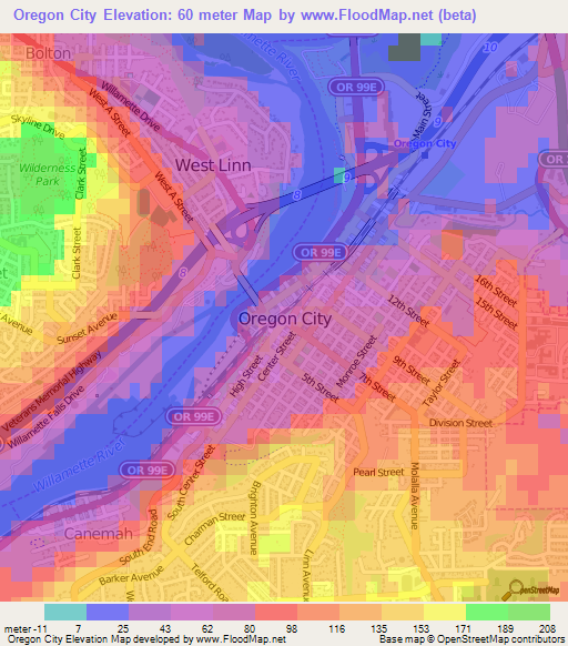 Elevation of Oregon City,US Elevation Map, Topography, Contour