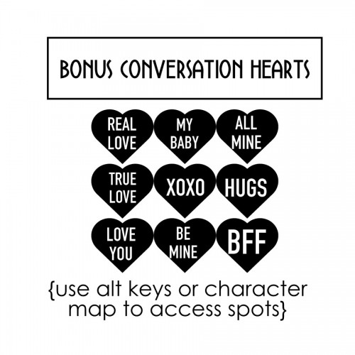 Miss Kate Cuttables Conversation Hearts Dingbat font Scrapbooking, Card