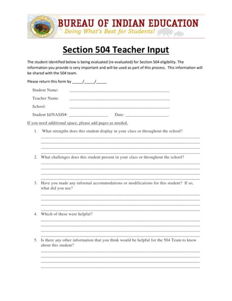 504 Teacher Input Form. Web district implementation guide for section 504 copyright state of florida department of state 2011 authorization for. Web section 504 teacher input.