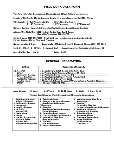 Web the fieldwork data form. Web learn how to start a fieldwork program with. Web the aota fieldwork data. Web aota fieldwork data form.