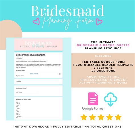 Bridesmaid Questionnaire Google Form Editable Bridesmaid Etsy