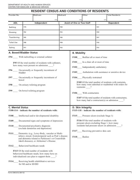 Cms Form 672. Resident census and conditions of residents. This form is to be completed by the.