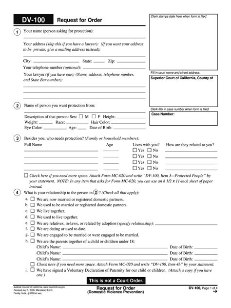 Dv 100 Form. Web do you need a domestic violence restraining order in california?