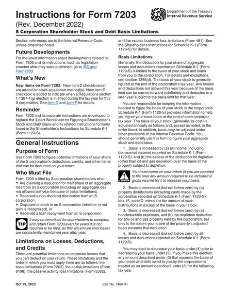 Download Instructions for IRS Form 7203 S Corporation Shareholder Stock
