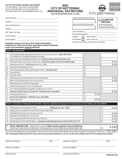 Instructions For Form Kr1040 Kettering Individual Tax Return