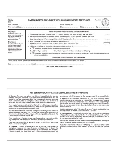 Form M4 Massachusetts Employee'S Withholding Exemption Certificate