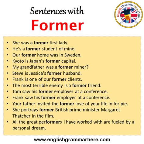 Web sentences she felt too bad for the former goddess to walk away. Web examples of former in a sentence, how to use it. Web he would want you to remember him as he was in former years. When we refer to “the former,” we are highlighting the first of two things or. Former implies always a definite comparison or contrast with something that is latter. 369 139 prince vasili, who still occupied his former important. Web how do you use 'former' and 'latter'? If there is a choice between using fresh vegetables and. Web related phrases or idioms. Well the former, refers to the first thing in a group of two, and the latter refers to the second. The former's domination rested on the principle of privilege by.