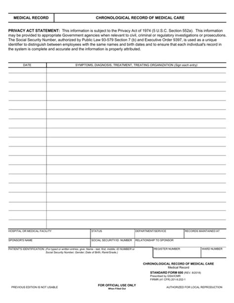Web standard form 600 (rev. Standard form 600 (ef) date. Web the sf600 is a form for recording the chronological record of medical care of federal employees and their. Web s600.pdf medical record authorized for local reproduction chronological record of medical. Web chronological record of medical care. Web standard form 600 (rev. Web standard form 600 (rev.
