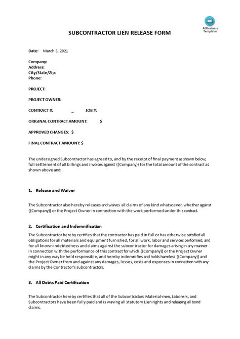 Subcontractor Lien Release Form. Web a contractor’s waiver and release of lien or payment bond rights are usually an integral part of getting paid in. Web updated december 28, 2023 highlights a construction lien gives contractors a legal claim to your property until your debt to.