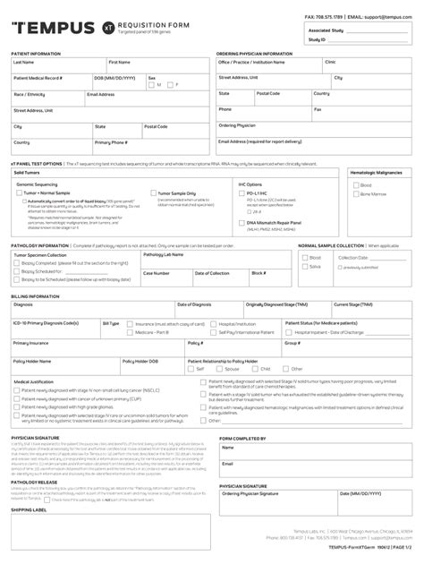 Tempus Requisition Form. Web how to order help to order the tempus test: Retrieve the tempus xf collection kit.
