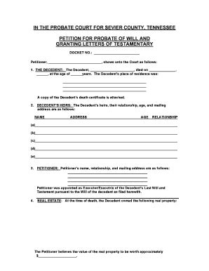 Tennessee Probate Forms. Web to provide that the ‘verified’ petition in the decedents’ estates shall include the name, age, mailing address, relationship of the proposed personal representative to the decedent, a statement of felony or. General sessions civil court forms (supreme court approved) juvenile court forms.