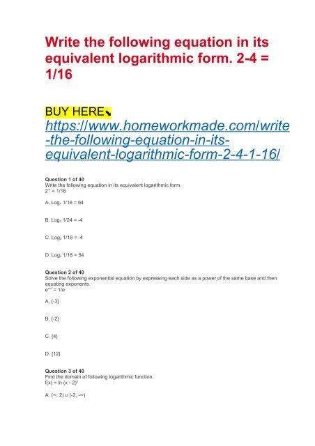 Write The Following Equation In Its Equivalent Logarithmic Form.. Web logarithmic equations can be written in an equivalent exponential form, using the definition of a logarithm. Y = ex y = e x.