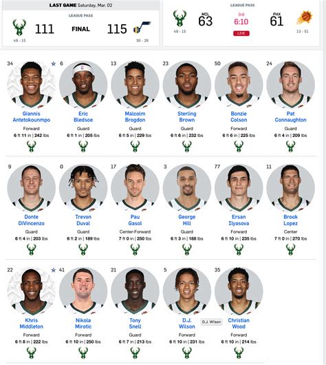 2019 Bucks Roster. Web team & player stats stats roster roster schedule & results schedule splits splits National basketball association (nba)team record: