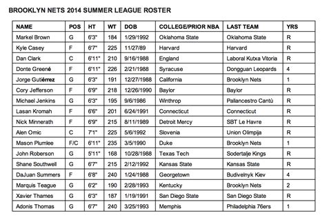 Brooklyn Roster 2014. Overview stats scores & schedule roster splits history.