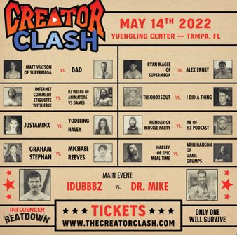 Creator Clash 1 Roster. Web creator clash, a first of its kind boxing event sanctioned by the florida state boxing commission, featuring famed. Web facebook · twitter · instagram.