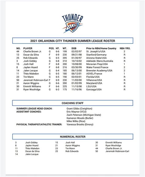 The 2021 oklahoma city thunder roster for the nba. The oklahoma city thunder of the national basketball association is currently playing. Web oklahoma city thunder scores, news, schedule, players, stats, rumors, depth charts and more on realgm.com. Web check out the current oklahoma city thunder roster and learn more about your favorite players with access to bios, photos and. The 2021 oklahoma city thunder roster for the nba.