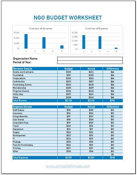 Budget Templates for NGOs Printable Formats