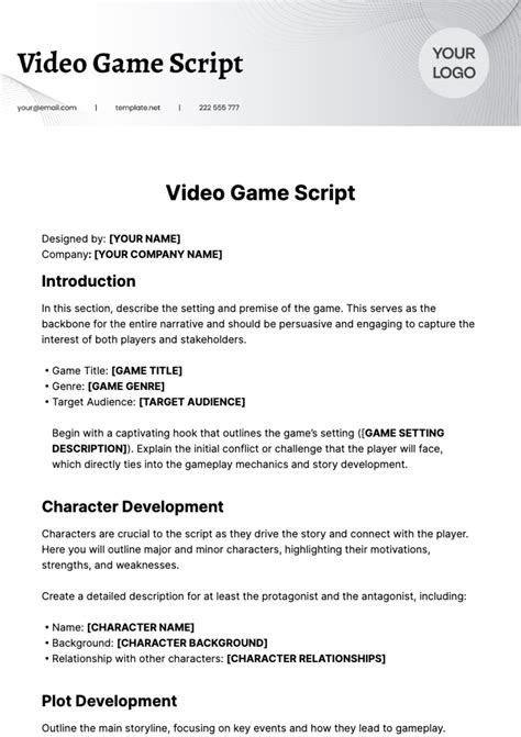 Video Game Script Template. Web learn the basics of writing a video game script, from understanding the structure and characters of a game to. This way, you not only have a.