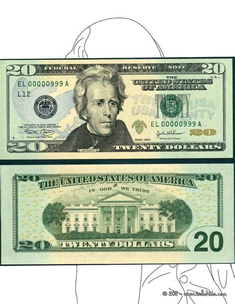 $20 Bill Printable. A portrait of andrew jackson, the seventh u.s. Download dollars in detail guide.