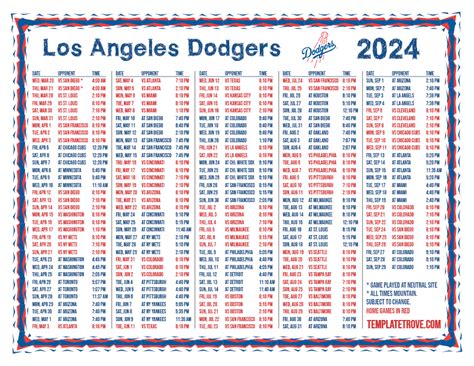 Printable Schedule Los Angeles Dodgers