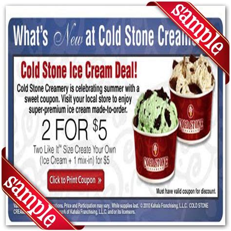 Cold Stone Coupon Buy One Get One Free Cold Stone Ice Cream! Cold
