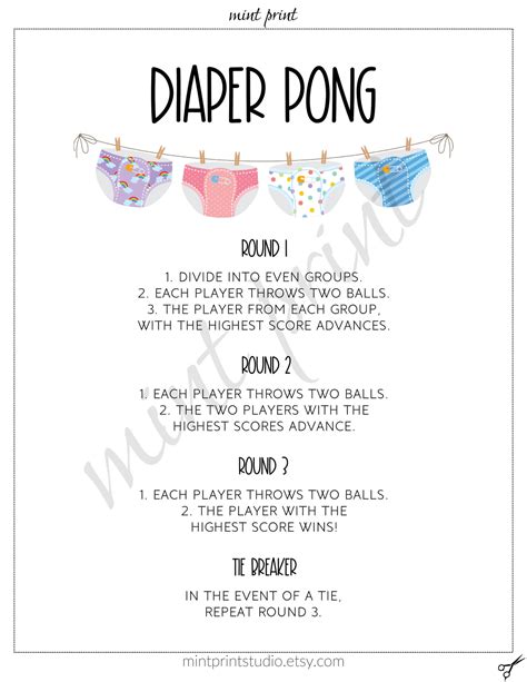 Diaper Pong Baby Shower Game Diaper Pong Rules Printable Etsy