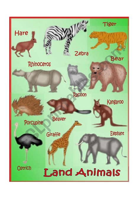 English worksheets Land Animals
