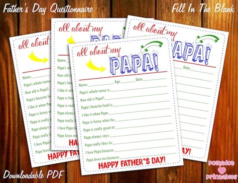 Free Printable Papa Questionnaire Printable Templates Free