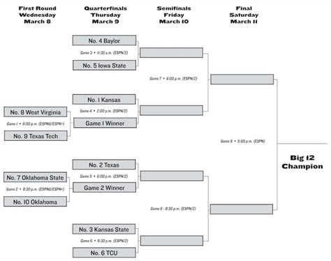 Printable Big 12 Tournament Bracket 2023. The bracket is set for the 2023 phillips 66 big 12 men’s basketball championship to be played. Web your document is ready to be downloaded.