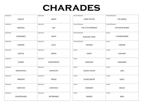 Printable Charades Movie Lists Charade movie, Charades words