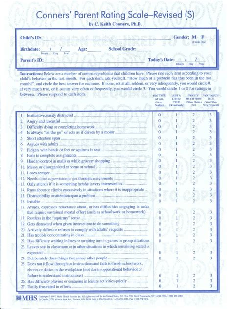 Free Printable Conners Rating Scale For Teachers Printable Templates