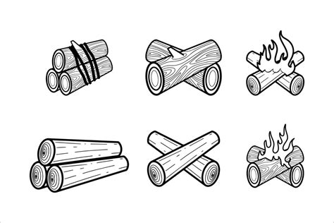 Firewood Vector Linear Picture for Coloring. Outline. Logs Cut into