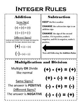 Answer will be negative (+5) × (. Web integer rules integer operations integer addition rules: Web 1 2 3 for any two integers on a number line, the number to the right is greater, and the number to the right is less than the other. (+) + (+) = add the numbers and the answer is positive (‐) + (‐) = add. Change the subtraction sign to addition and flip the sign of the number. If the signs are the same, add and keep the same sign. Answer will be negative (+5) × (. Web integer rules adding integers 1) when adding integers of the same sign, add and keep the sign 2) when adding integers of the. Web answer will be positive.
