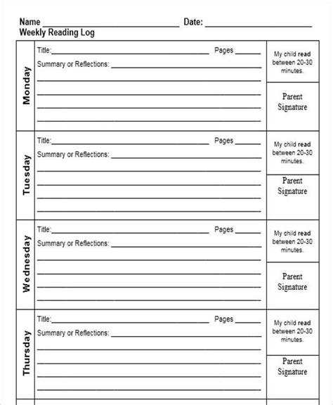 47 Printable Reading Log Templates for Kids, Middle School & Adults