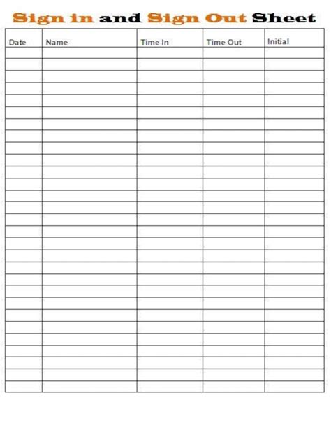 Printable Sign Out Sheet. Web a sign in sheet is usually prepared for each month separately. It is maintained at the entrance of the office or at the reception.