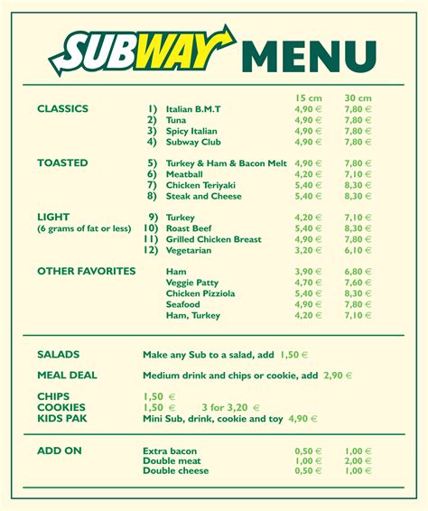 Printable Subway Menu 2023 Minimalist Blank Printable