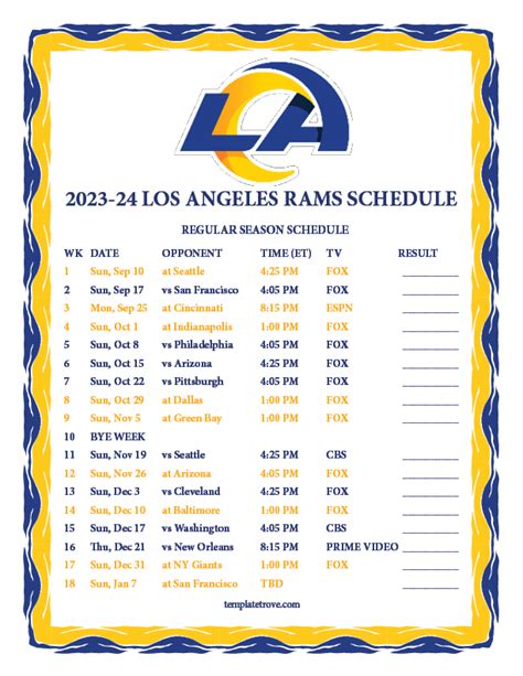 Rams Schedule 2023 Printable. Web 19 rows full los angeles. Web may 11, 2023 5:04 pm pt.